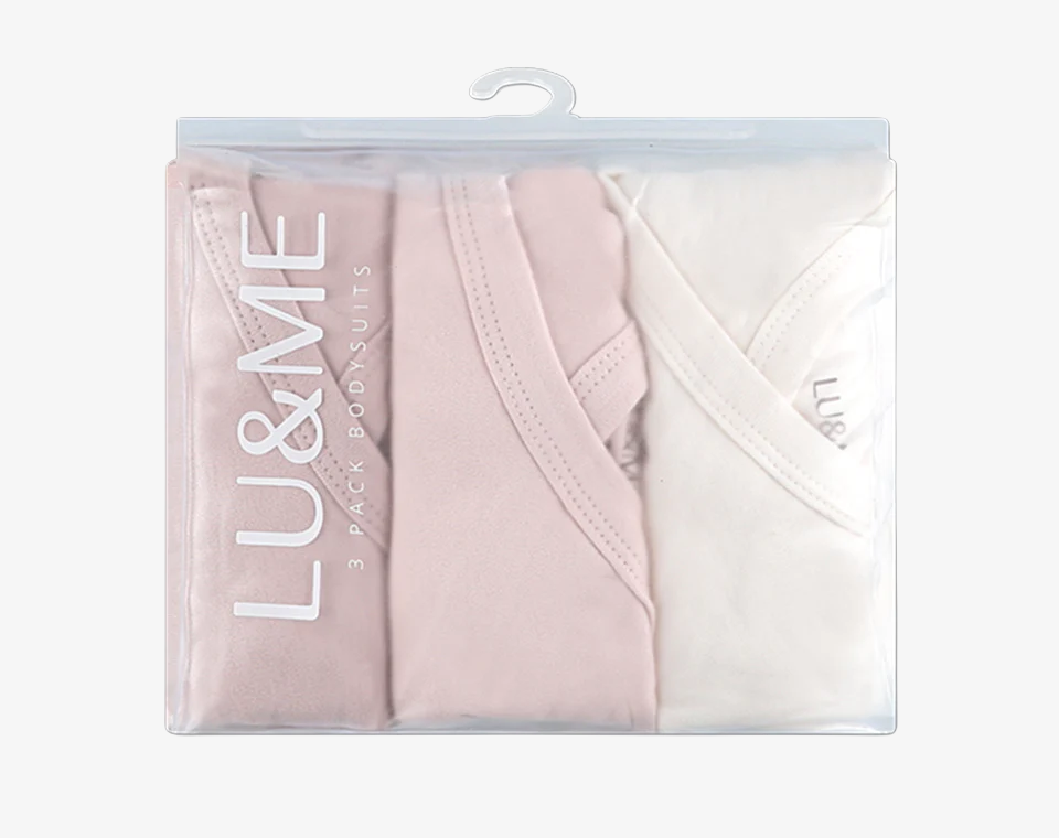 מארז שלישיית בגדי גוף מעטפת ורוד בהיר LU&ME