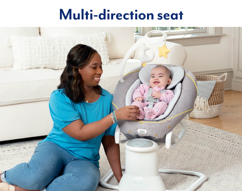 נדנדה חשמלית גרקו 2 ב 1 משולבת טרמפולינה Graco All Ways Soother עם 8 מצבי נידנוד, 3 מצבי שכיבה ו-2 מצבי ישיבה.