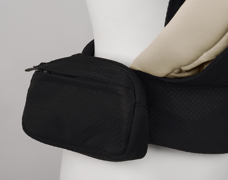 המנשא עשוי מבד רשת נושם וכולל רצועות כתפיים ומותניים מרופדות לנוחות מרבית – גם להורה וגם לתינוק. חגורת המותן ננעלת בלחיצה קלה ומתכווננת לכל מידה. בנוסף, הוא כולל נרתיק יד נשלף לאחסון פריטים חיוניים – כך שאתם מוכנים להרפתקאות בלחיצת כפתור.