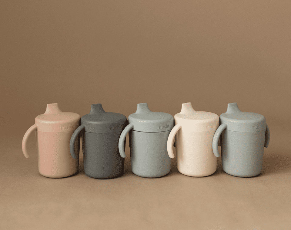כוס אימון מושלמת לתינוק מבית Mushie – בעיצוב נקי ואלגנטי, עם ידיות אחיזה נוחות, מכסה נשלף וחומרים בטוחים לשתייה עצמאית ומהנה.