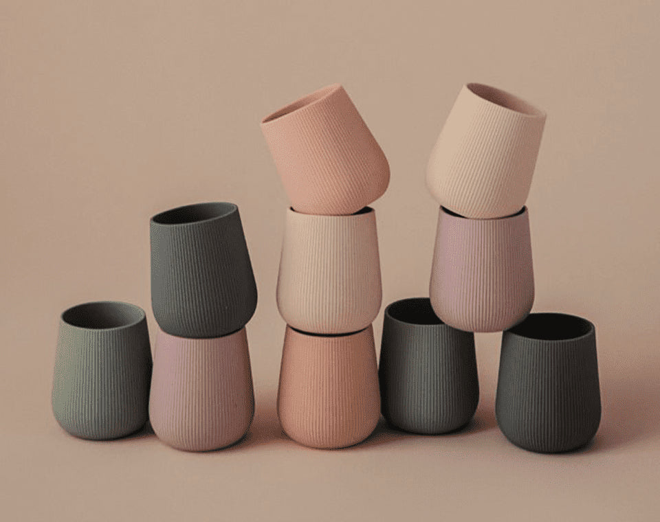 כוס ראשונה מסיליקון רך מבית Mushie – בטוחה, נוחה ויציבה, לתרגול שתייה מכוס פתוחה בגיל הרך.
