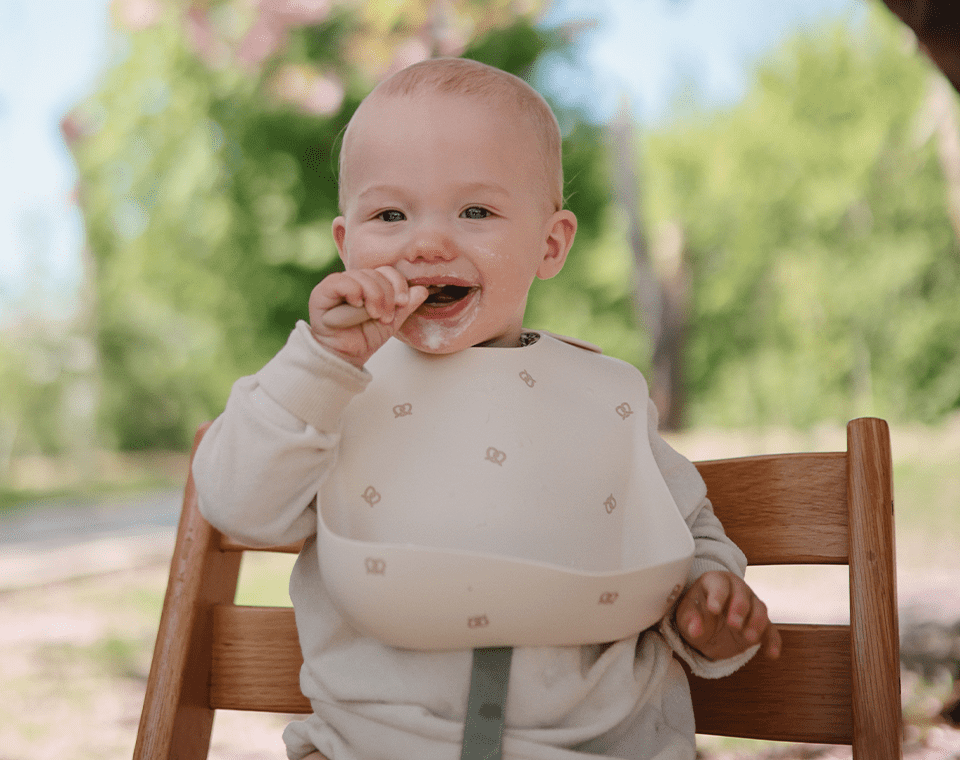 *סינר הסיליקון של מושי מעוצב בשוודיה ומאופיין במראה על זמני אלגנטי וקלאסי, הוא פרקטי ועוזר לשמור על הניקיון בנוחות מרבית לאם ולפעוט*