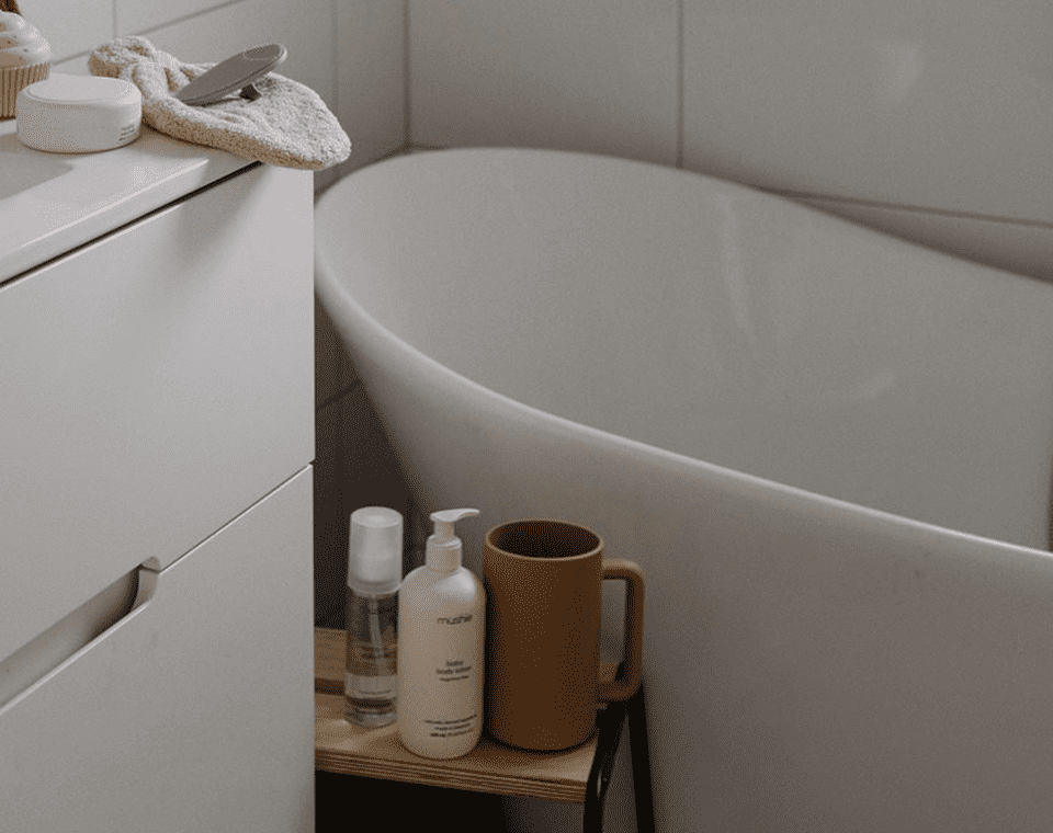 הכירו את כוס השטיפה לאמבט של Mushie – פתרון פשוט ויעיל לרגעי השטיפה במקלחת.