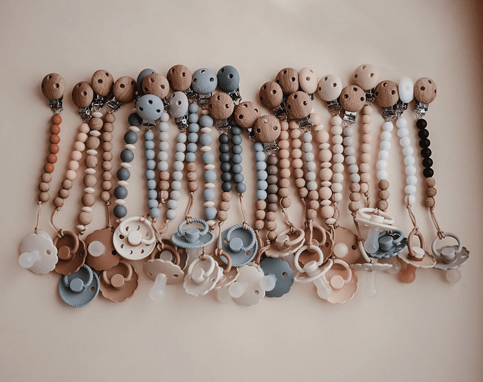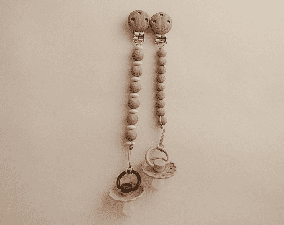 חרוזים בשני גדלים, המסודרים בדוגמה פשוטה ואסתטית, יוצרים מראה אלגנטי שהופך את מחזיק המוצץ לאביזר אהוב גם על ההורים וגם על הקטנטנים. שומר את המוצץ או חפצי ההרגעה בהישג יד, וקל מאוד לניקוי.