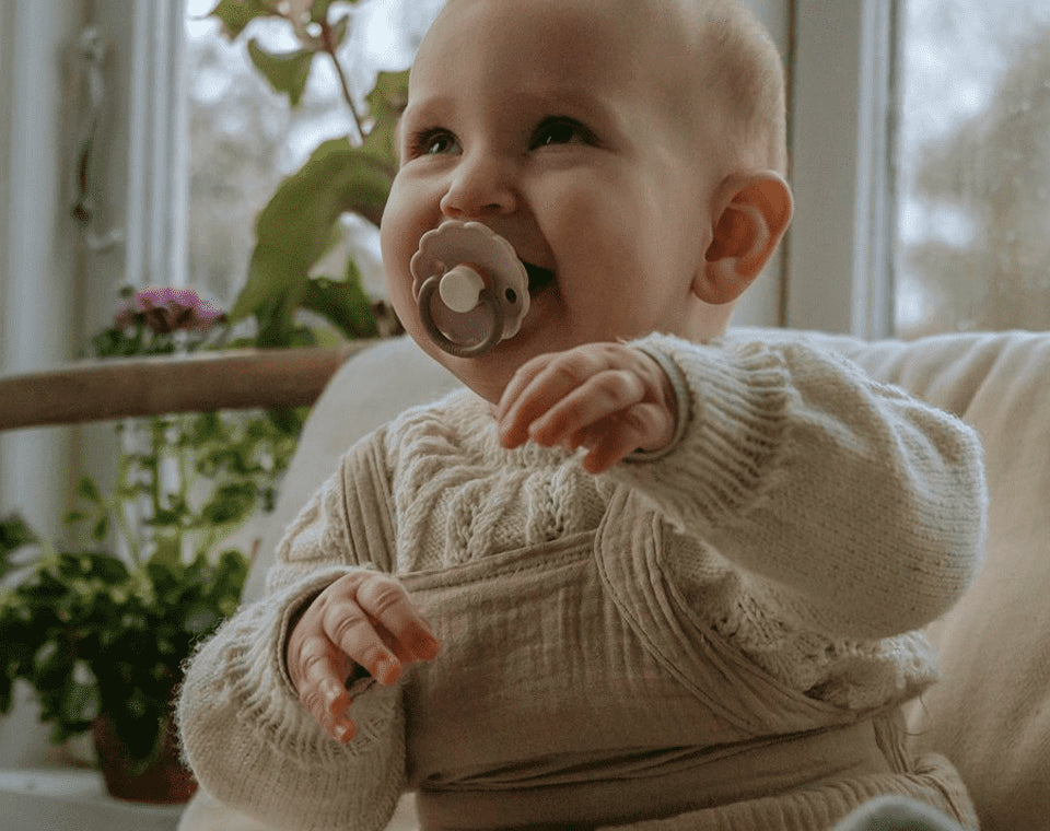 המוצצים מעוצבים בקימור חיצוני ששומר על מרחק מהעור העדין של התינוק, וכוללים פתחי אוורור וידית בטיחות לנוחות ושקט נפשי להורים.