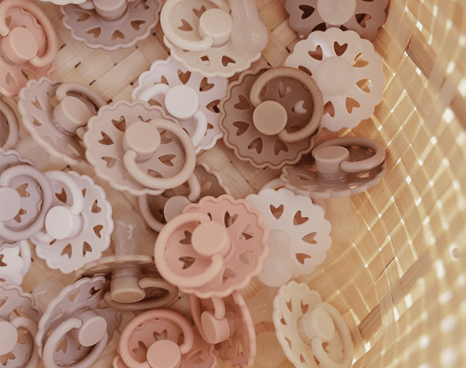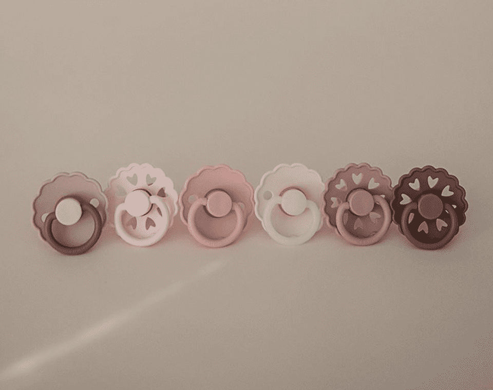 מארז שישיית מוצצי סיליקון בעלי פטמה עגולה מבית FRIGG – בעיצובים וצבעים שונים, כדי להעניק לתינוקך חוויית שימוש מגוונת, בטוחה ונעימה.