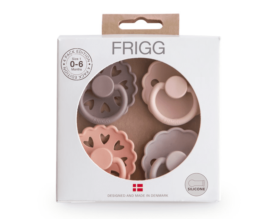 המארז כולל ארבעה מוצצים מסדרת הסיליקון של FRIGG – פטמת סיליקון עגולה סימטרית.