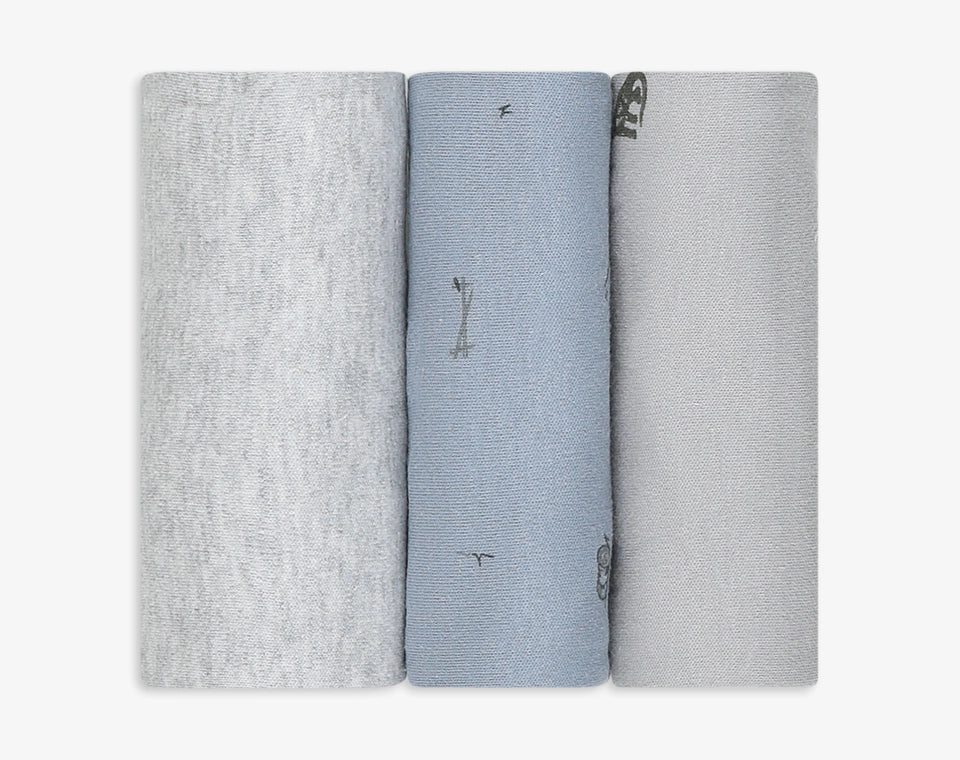 שלישיית חיתולי טריקו רכים ונעימים בגודל 60x60, עשויים 100 אחוז כותנה.