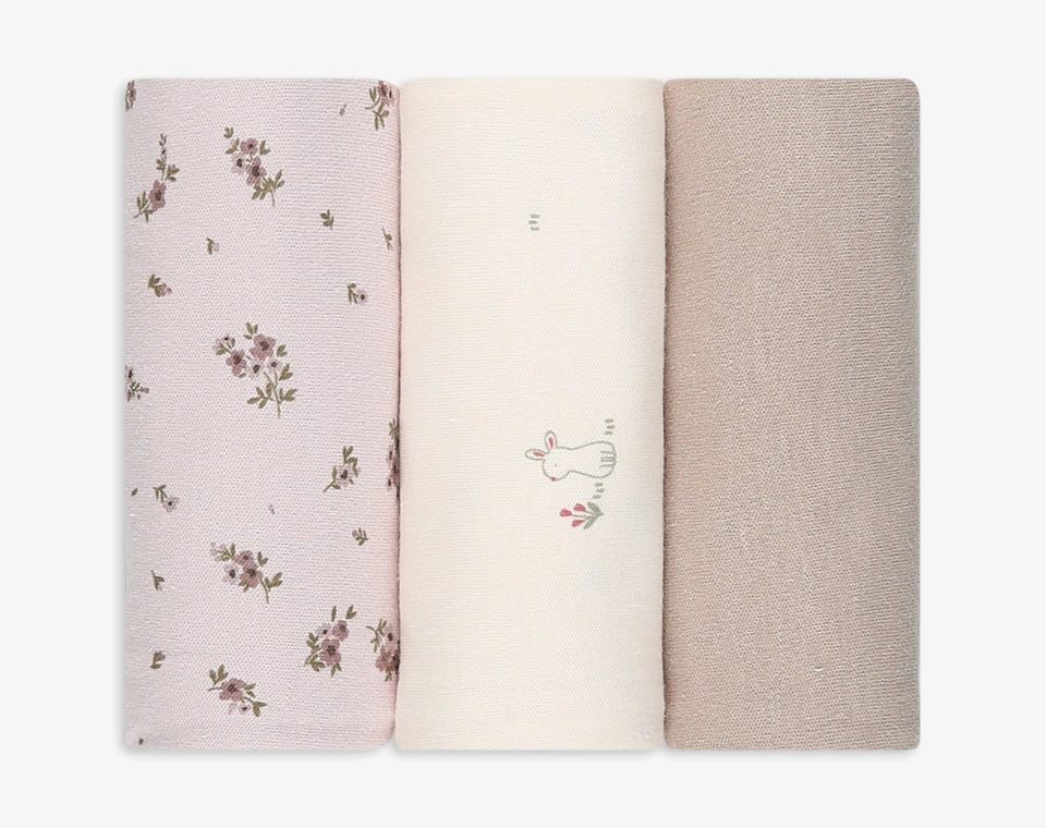 שלישיית חיתולי טריקו רכים ונעימים בגודל 60x60, עשויים 100 אחוז כותנה.