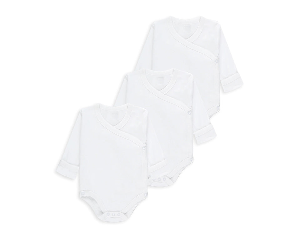 שלישיית בגדי גוף מעטפת בצבע לבן של BooBee מבד פלנל עשויים 100% כותנה