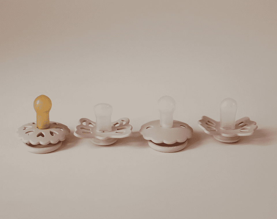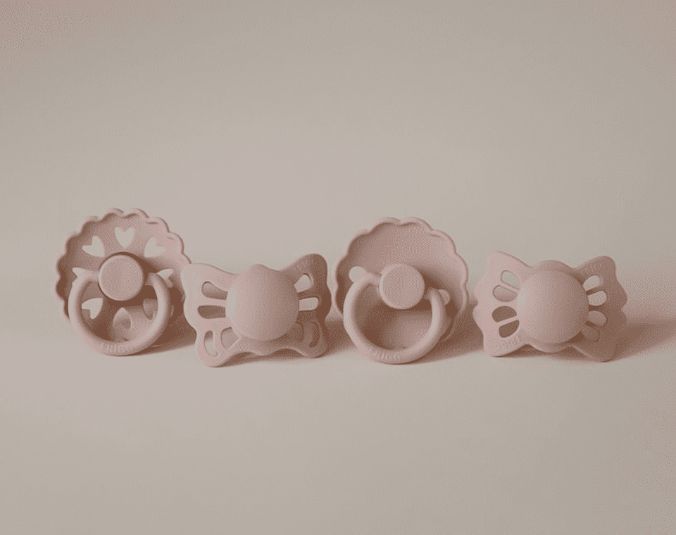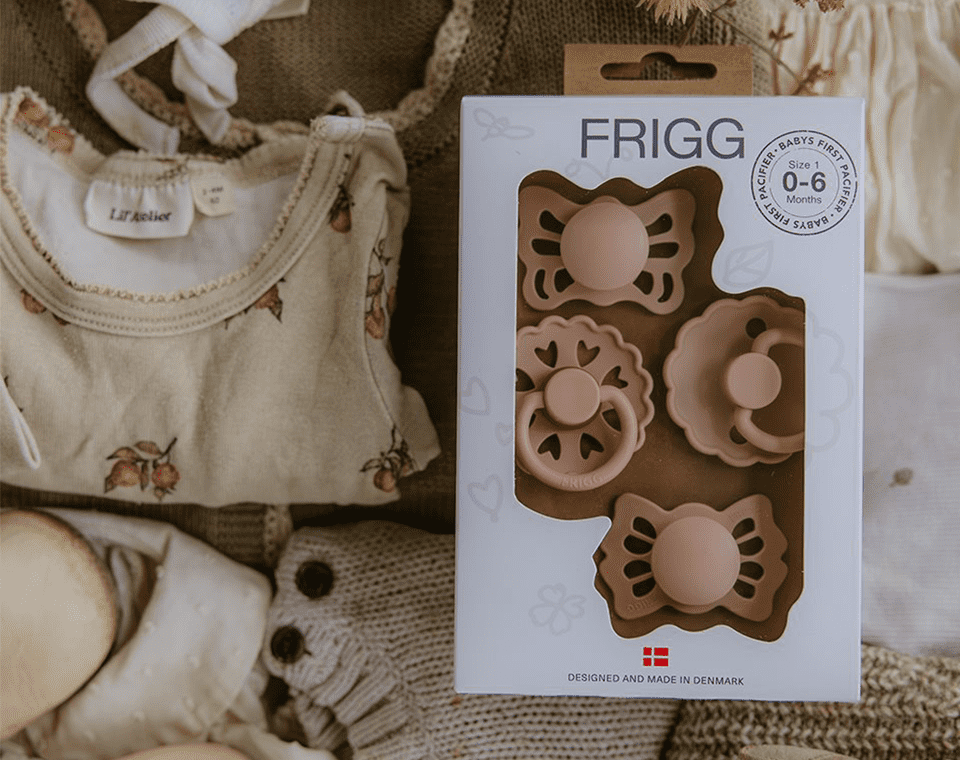 מארז מוצצים ייחודי מבית FRIGG, הכולל ארבעה מוצצים בעיצובים שונים ובסוגי פטמות מגוונים – סיליקון רפואי וגומי טבעי – כדי לאפשר לתינוקך לנסות ולהתחבר למוצץ המתאים לו ביותר.