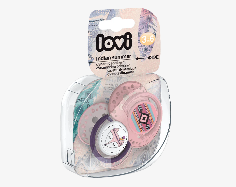 הצטרפו לשבט של לאבי LOVI עם מוצצים ממהדורת קיץ אינדיאני, מוצץ בטכנולוגיית Dynamic Teat ® לתמיכה בבריאות הפה.