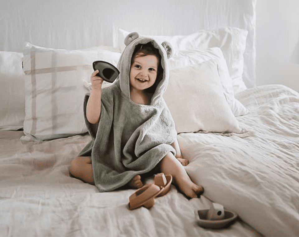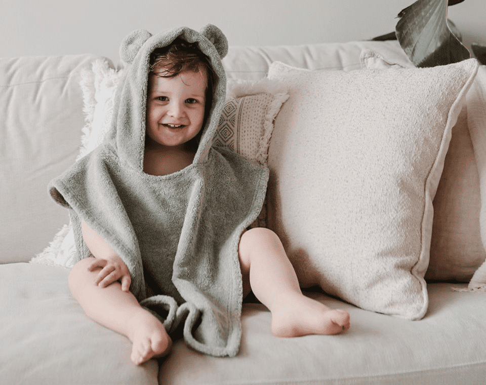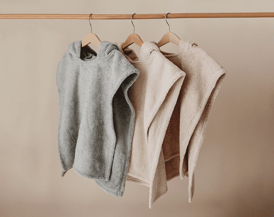 מגבת הפונצ'ו שלנו עשויה מ-100% כותנה אורגנית, עדינה במיוחד לעור רגיש – מושלמת לחיבוק חמים ונעים אחרי האמבטיה או הבריכה.