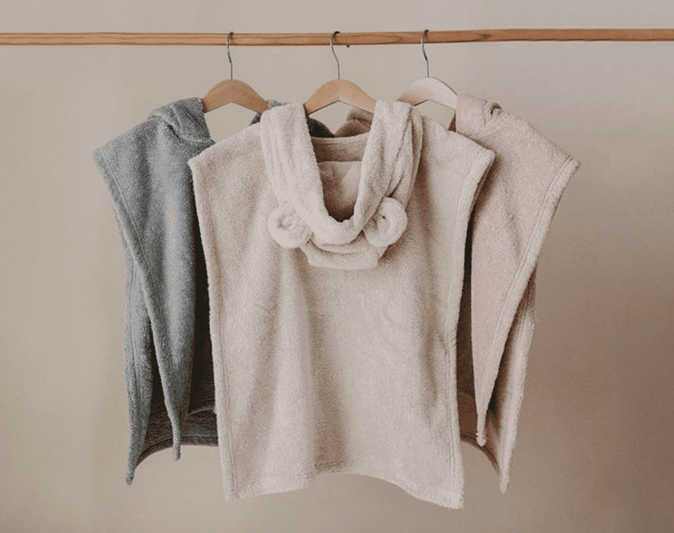 מגבת הפונצ'ו שלנו עשויה מ-100% כותנה אורגנית, עדינה במיוחד לעור רגיש – מושלמת לחיבוק חמים ונעים אחרי האמבטיה או הבריכה.