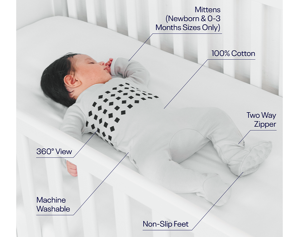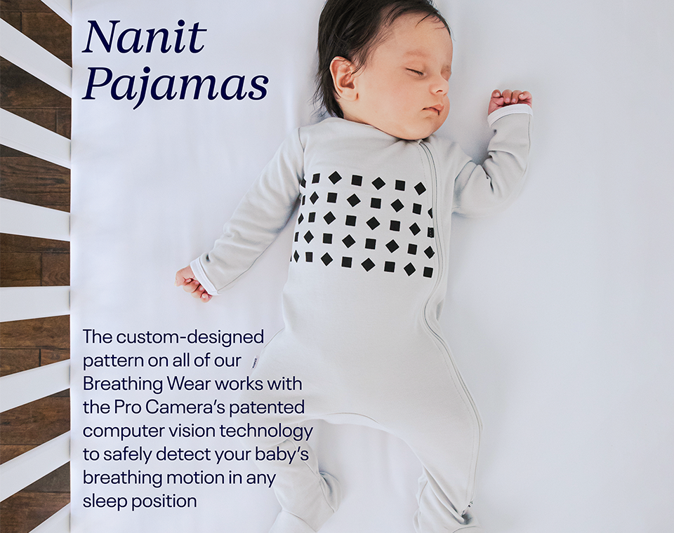הדפוס המעוצב בהתאמה אישית על כל הבגדים מנטרי הנשימה שלנו, פועל עם טכנולוגיית הראייה הממוחשבת של מצלמת Nanit ומזהה בבטחה את תנועת הנשימה של התינוק בכל תנוחת שינה – ללא כל חיישנים, אמצעי אלקטרוניקה או מכ"מים! אם הקטנטן יהיה צריך אתכם – היא תשלח לכם התראה בזמן אמת