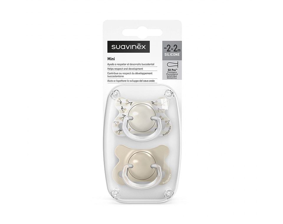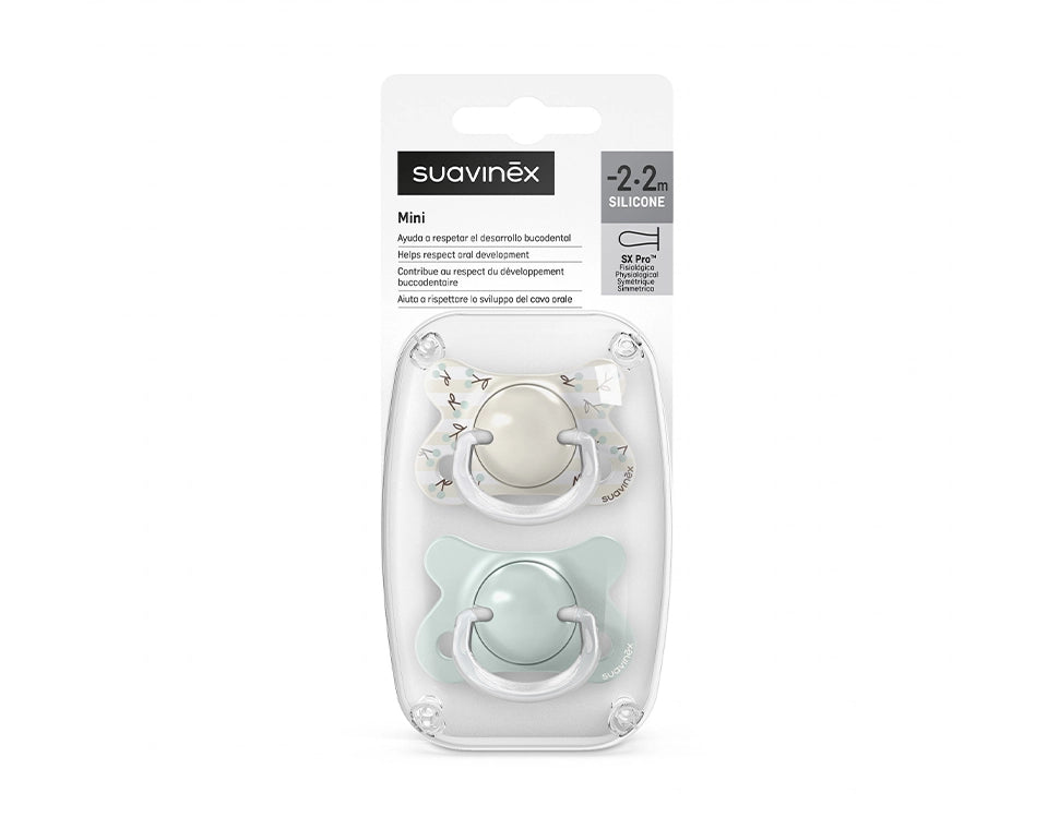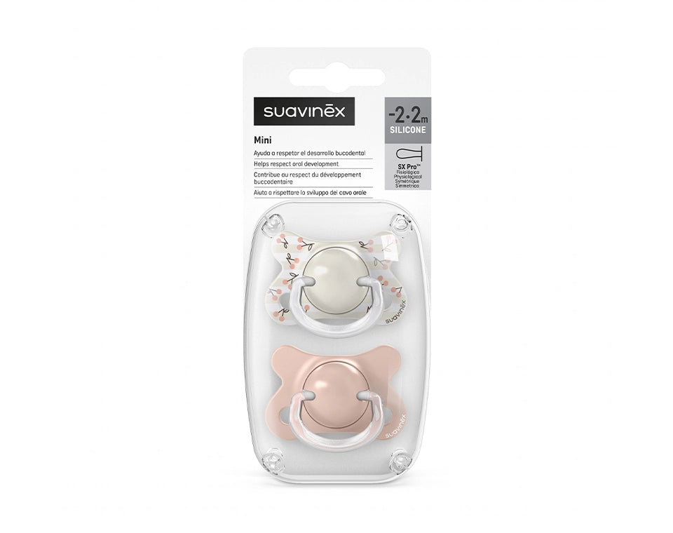 זוג מוצצי -2+2 SX PRO מיני, פותח ותוכנן במיוחד על ידי אורתודנטים ומומחים עבור הרגעים הראשונים של החיים, לניובורן ואף לפגים.