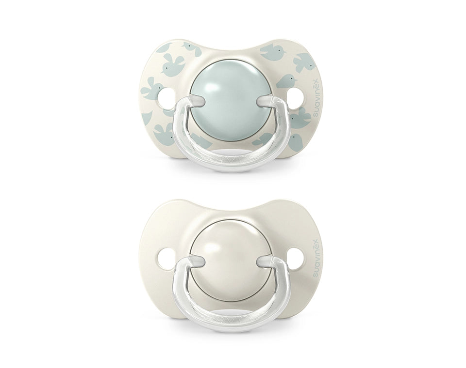 זוג מוצצי 6-18 מסדרת BIRDIES עם איורים קסומים ופטמת סיליקון פיזיולוגית Sx Pro - שפותחה וממולצת על ידי אורתודנטים ומומחים.