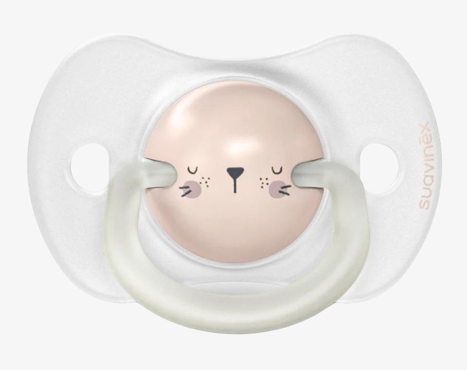 זוג מוצצי 6-18 מסדרת זוהרים בחושך עם איור אריה ופטמת סליקון פיזיולוגית Sx Pro- שפותחה על ידי אורתודנטים ומומחים.