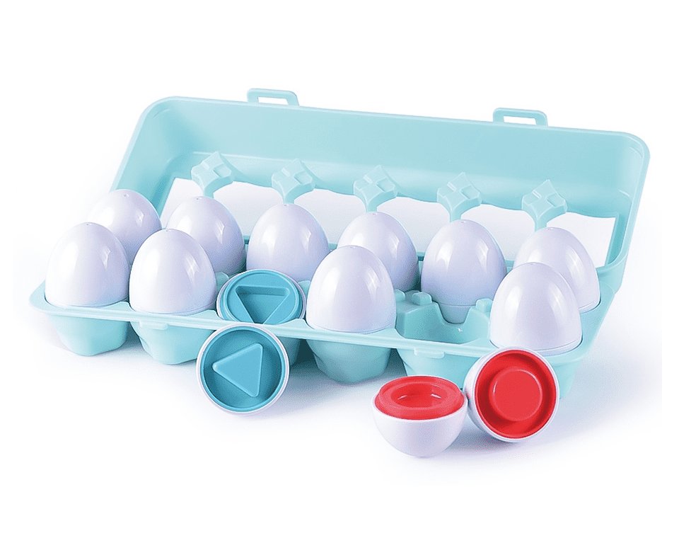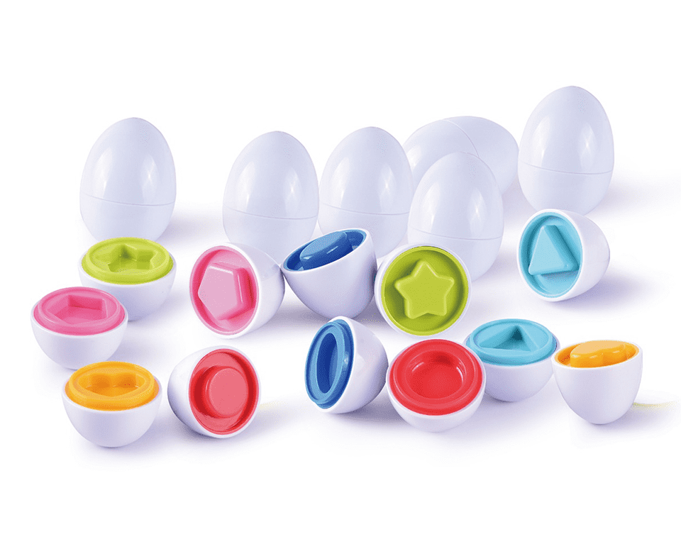המשחק כולל 12 ביצים, בכל ביצה מסתתרת צורה בצבע שונה. המשחק מלמד את הילדים התאמה של צורה וצבע באמצעות פתיחה וסגירה של הביצים, בהתאמה. הביצים קלות לאחיזה. המשחק מפתח יכולות מוטוריות, תאום עין יד, חשיבה ופתרון בעיות. מתאים מגיל שנה וחצי ומעלה