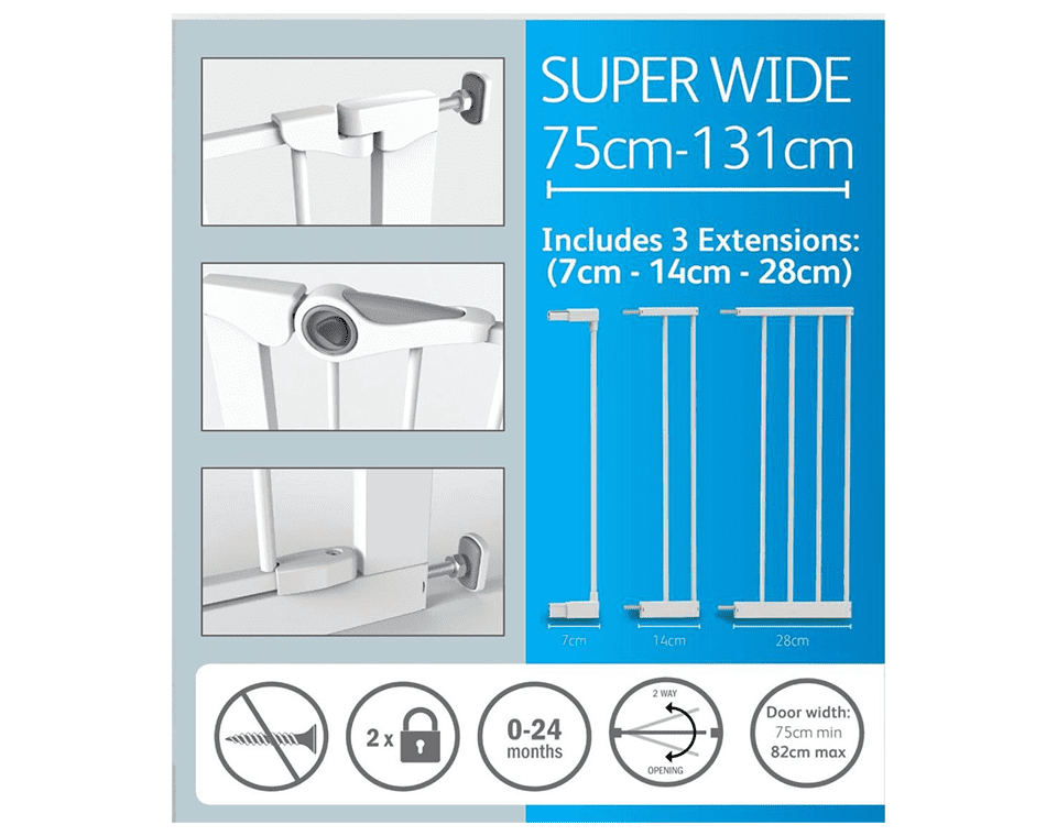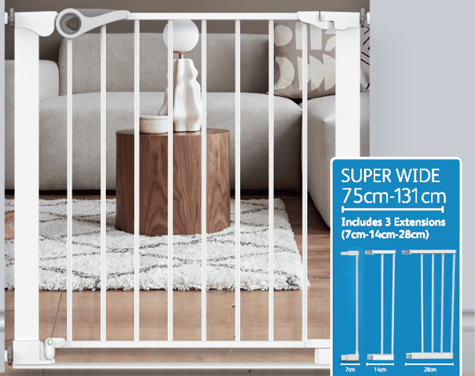 איזי פיט שער בטיחות שטוח + 3 מאריכים לבן 75-131 ס"מ (תקן ארופאי)