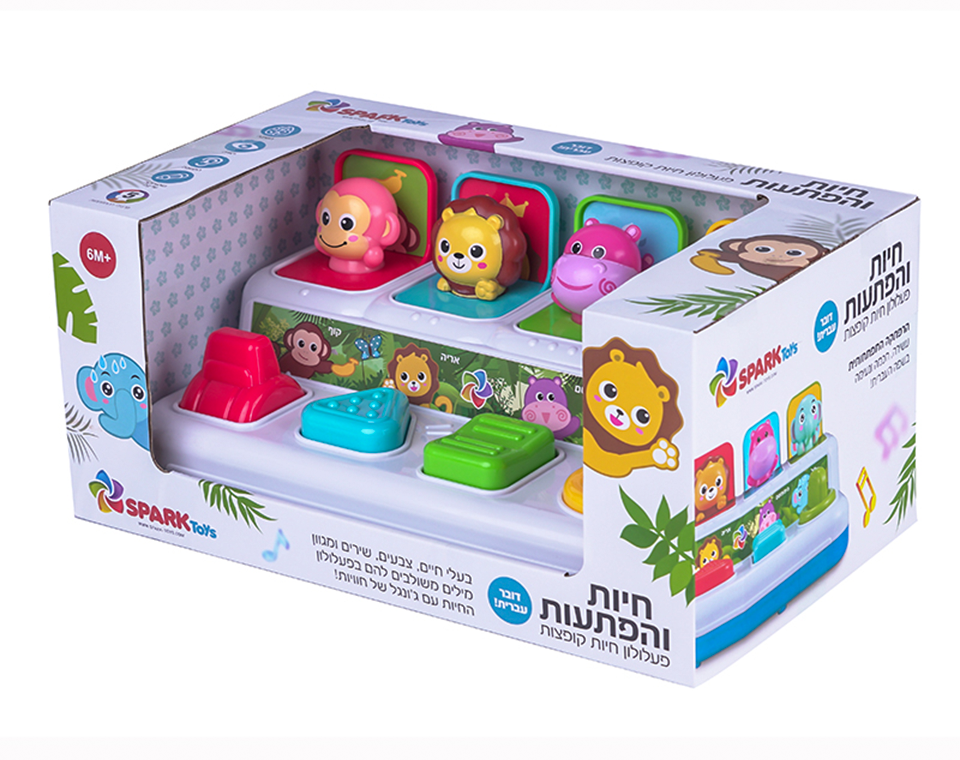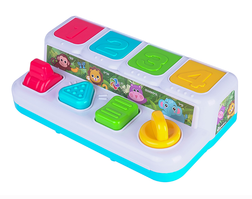 צעצוע שמעודד חושים, מוטוריקה וקשר עין-יד, כמו קשת פעילות, מזרן פעילות, משחקי קוביות ועוד.