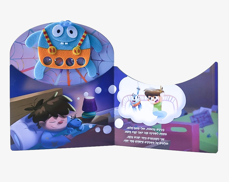 שיר הילדים הקלאסי: ״ על הקיר טיפס לו עכביש קטן״, מתעורר לחיים באמצעות בובת משחק המופעלת על ידי המספר או על ידי הילד.