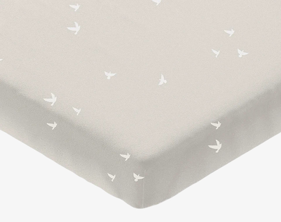 סדין למיטת תינוק בז׳ הדפס ציפורים