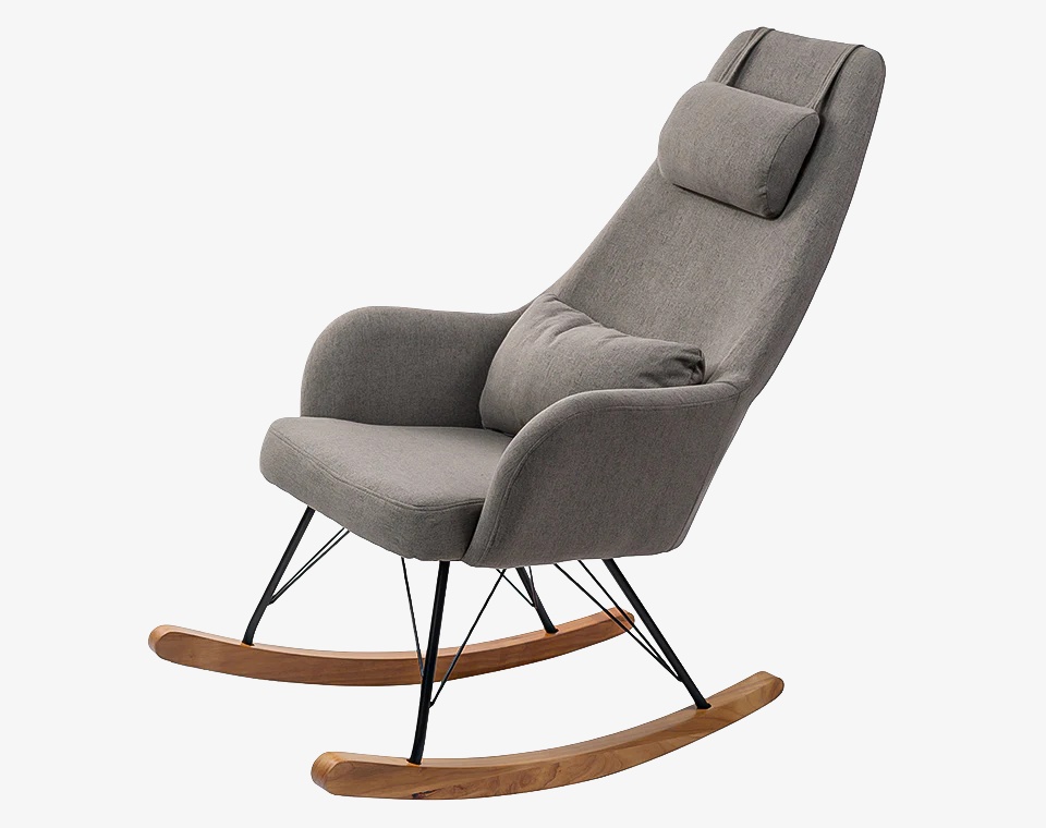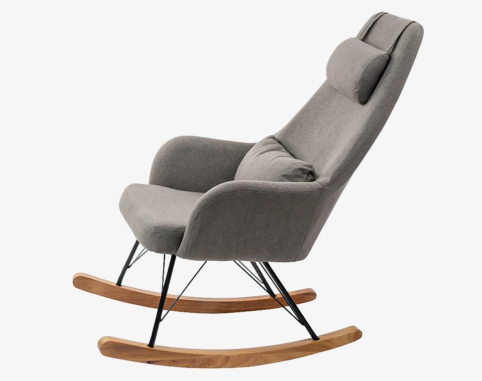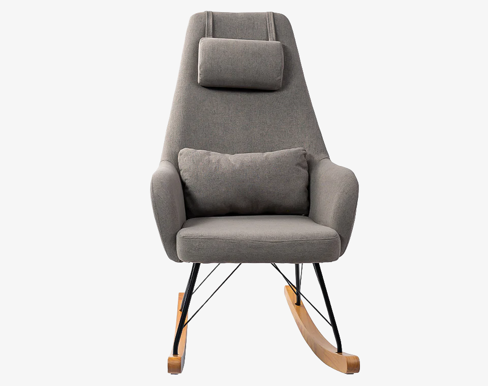 כורסת הנקה בצבע אפור כהה עם רגליים מעץ, אידאלי להנקה ולהרגעת הקטנצ'יק שלכם